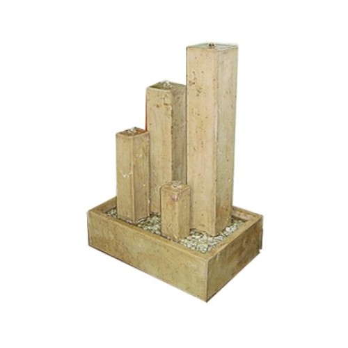 La fuente Nueva York es un juego de cuatro torres cuadradas que vierten agua a diferentes alturas. Su diseño de bomba unica permite regular el flujo de cada torre. Todo está englobado en una tina que contiene el agua.