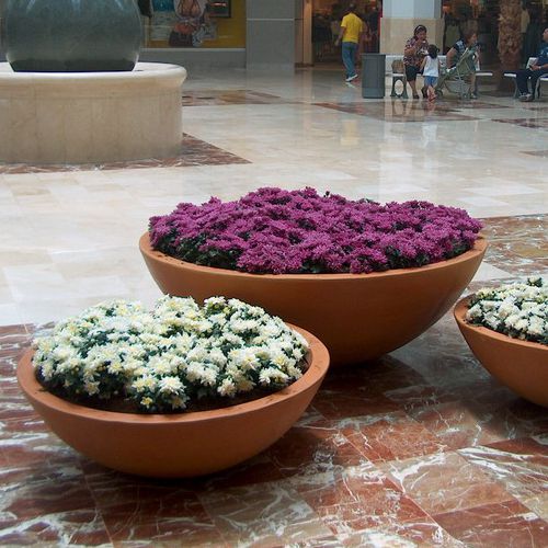 Las Jicaras son macetas de fibra de vidrio redondas y chaparras. Son ídeales para patas de elefante, flores de temporada y arbustos. Son muy utilizadas en muros, bardas y desniveles