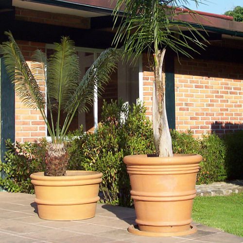 Los Vasos Italianos de fibra de vidrio son la clásica línea de macetas de terracotta. Su diseño con cinchos y formas suaves los hacen resaltar en casi cualquier parte del mundo