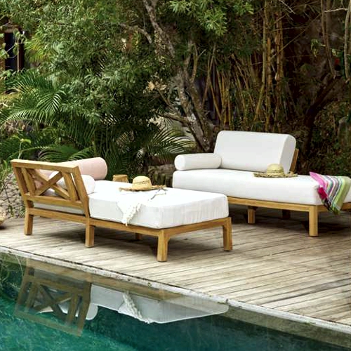 La sala Parla es una sala para exterior que une la resistencia y dureza de la teca de plantación con la cojinería de Tela Sunbrella para generar espacios lounge, agusto y de relax al exterior.