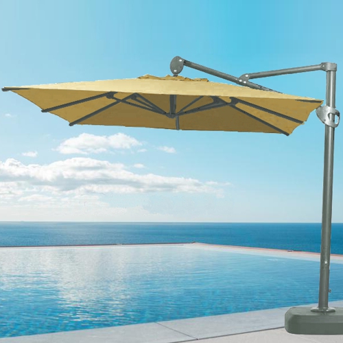 Las Sombrillas MAKU de poste lateral son sombrillas colgantes de forma cuadrada, ideales para terrazas y jardines. La sombrilla Maku se abre y cierra con una manivela en el poste lateral; gira 360° sobre su base para poder reorientarla fácilmente; se inclina hasta 60° para poder tapar el sol durante las primeras horas del día o en las tardes. La base se rellena con arena, alcanzando un peso de 200kgs pero tiene ruedas escondidas para poder mover la sombrilla con mucha facilidad. A todas estas caracteristicas le agregamos una cubierta de tela acrílica teñida al hilo marca Agora para exterior en 6 colores a escoger.